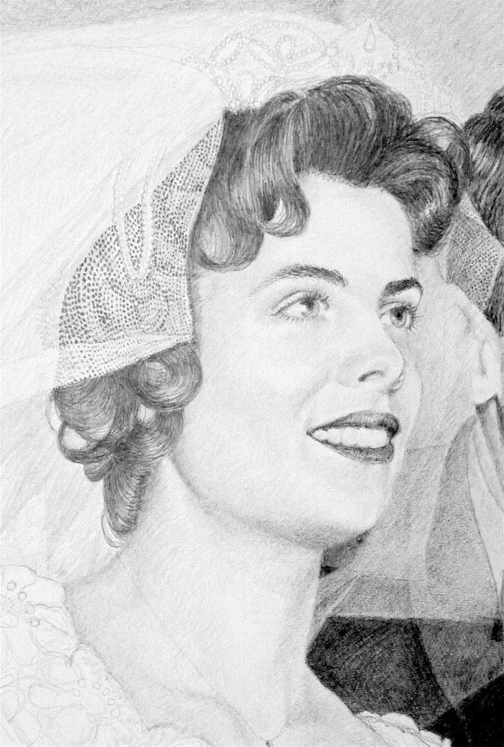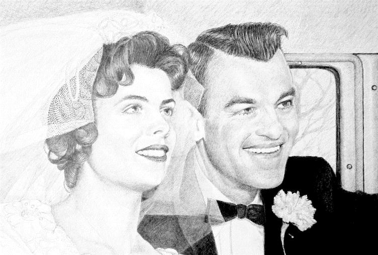 Helen and Will pencil on illustration board 15 inches by 20 inches sold Will surprised Helen for their 50th wedding anniversary with this portrait. |