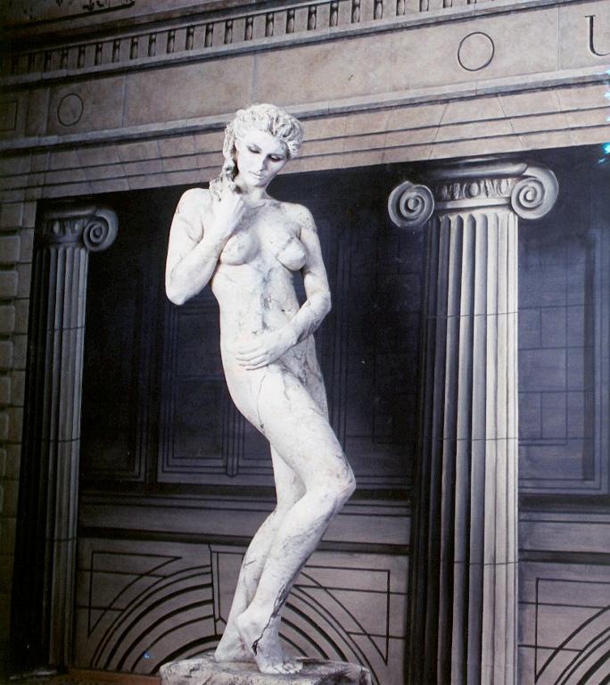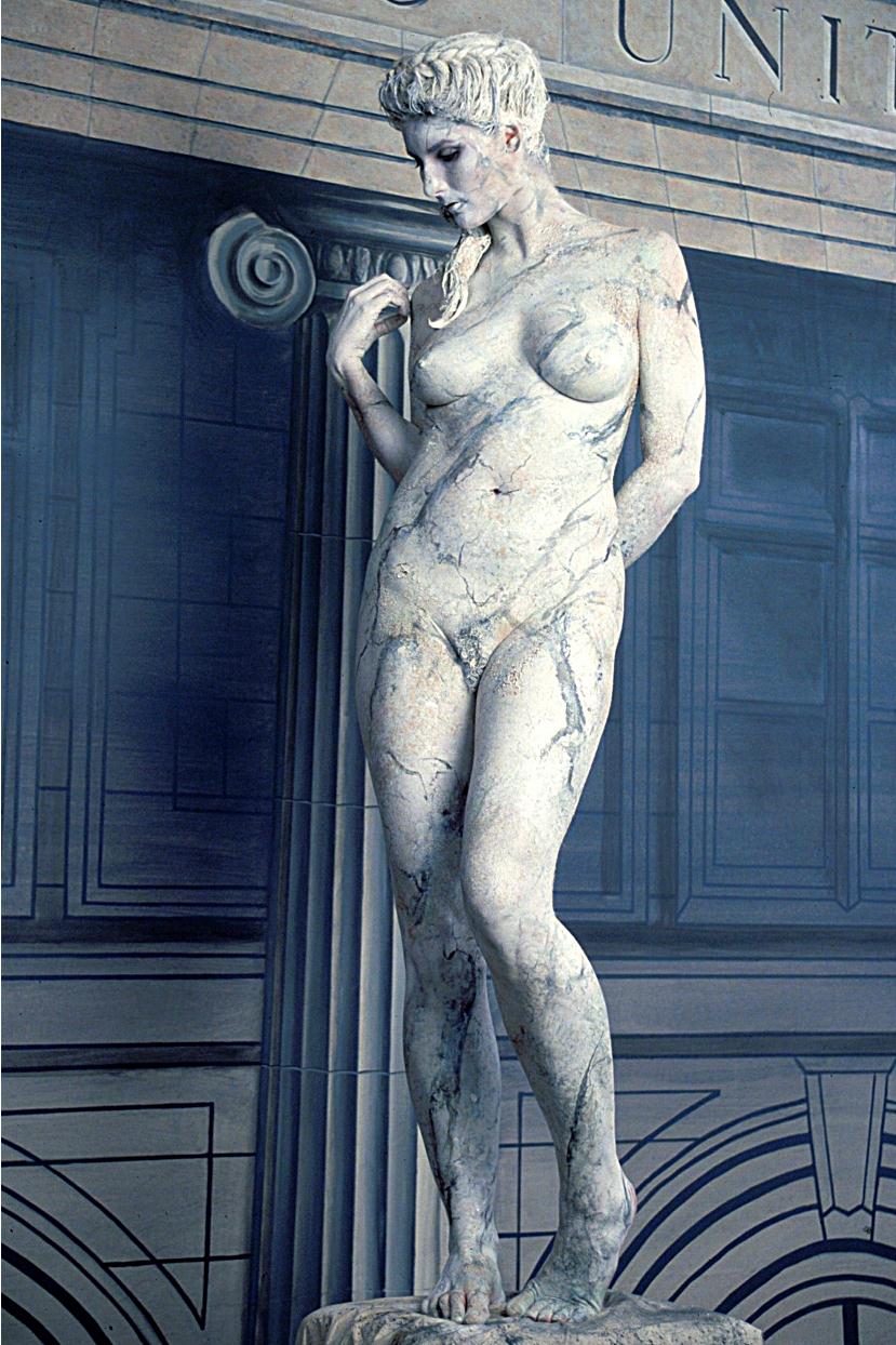 Haworth with Phanie This painting was part of the collection of work we did for Haworth Inc. Before it was installed in their showroom, we marbleized our friend, Phanie, and got her to model if front of the painting. |