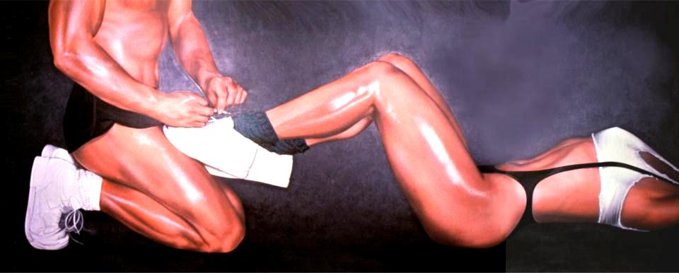 Body Builders We photographed 2 body builders and work with those pictures to create this 20 long painting for a nightclub. |