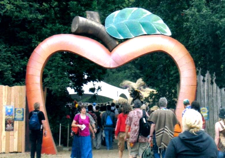 Peach Gate The entrance to the Country Fair changed dramatically when we installed the giant peach. It has given the fairies the kind of entry they deserve. It is constructed of bend plywood with an iridescent finish. |