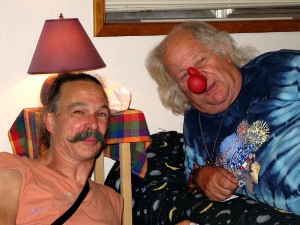 Wavy Gravy Dan with Wavy after the painting a mural in the bathroom at Alices in honor of Mr. Gravy. |