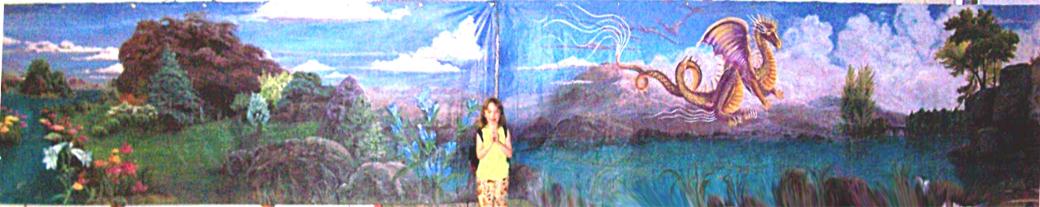 Child Care Child Care is located on Sesame Street at the top of the Eight. Kids can be checked into this sweet space to play, do art projects, make music, perform theatre, or just take a nap on cozy pillows. These paintings were designed to help define the space and create privacy. |