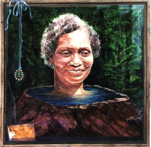 Portrait of a Virgo Goddess on the mountain summit, with totem stones and one of her letters.