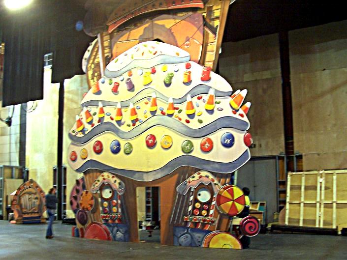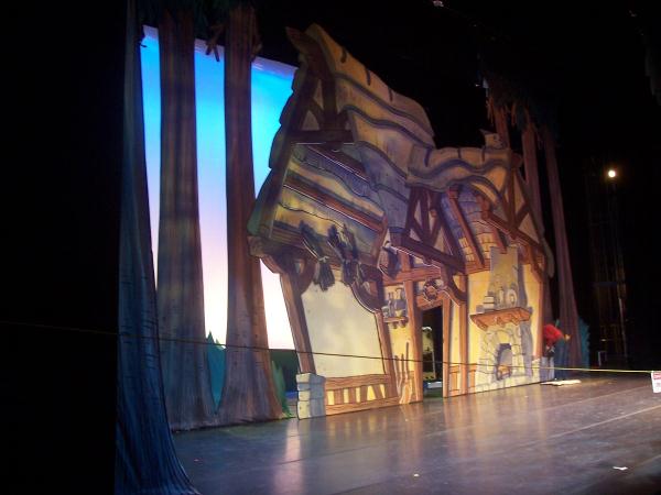 Hansel and Gretel This is the largest project Dan ever worked on for the Eugene Opera. Don Carson who works for Disney was the designer. We used the old sign painters technique to grid the 11 inch by 14 inch original drawings up to 30 feet high. Dan was lead carpenter and lead painter with 6 carpenters and 5 painters helping produce this set. |