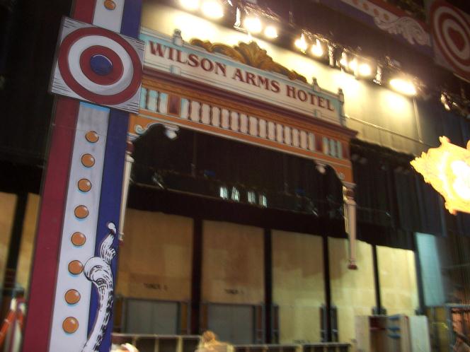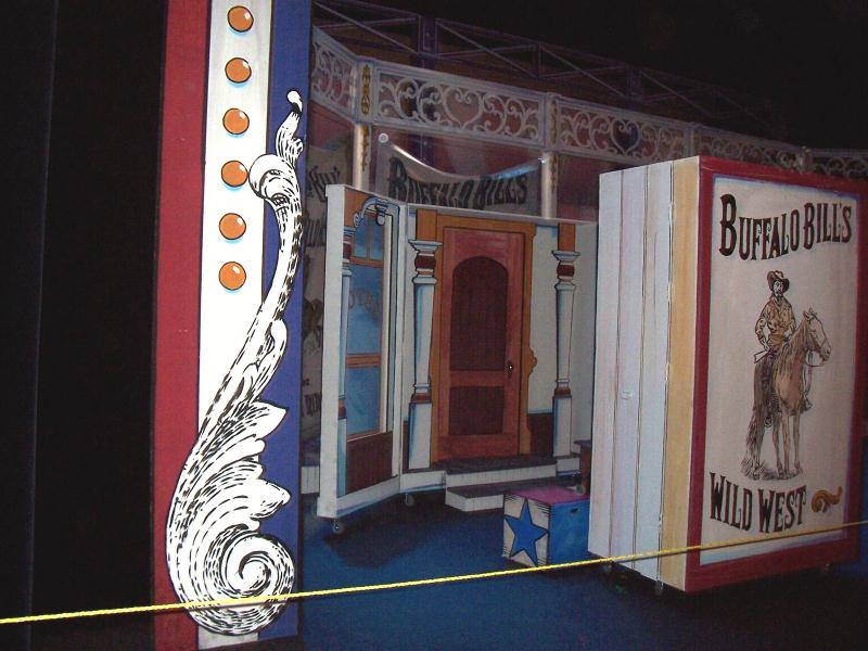 Annie Get Your Gun by Oregon Festival of American Music One Road Box is closed and the Hotel Road Box is open behind it. Road Boxes are so flexible in that they are mobile on wheels closed and then open into a great set piece like the Ship, Hotel or Train Interior. |