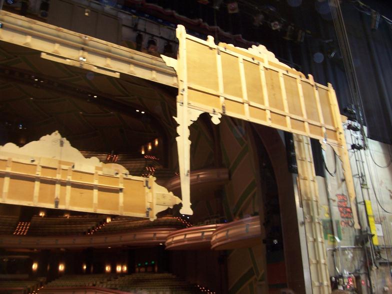 Annie Get Your Gun by Oregon Festival of American Music The flats hanging on the Hult Center stage with a lovely view of the main room behind. You can see the flats construction from the backs well here. |
