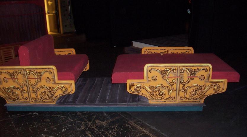 Annie Get Your Gun by Oregon Festival of American Music These are the Train Seats that position in front of the Train Interior Road Box ( photo above). These Train Seats fold up and down and the whole piece is constructed on a wagon for rolling about. |