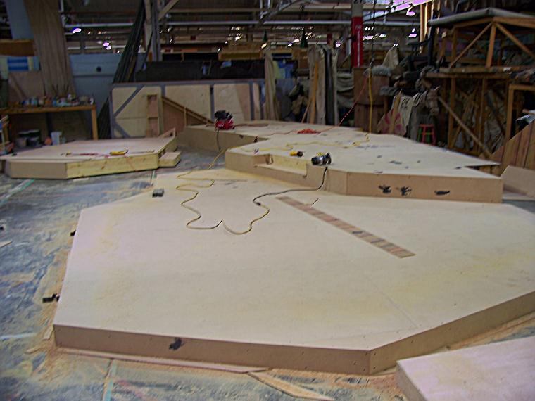 All In The Timing by Willamette repertory Theatre Heres a detail photo of the very complex unfinished floor that would roll open and then back into its self for different scenes. Lots of weird angles. |