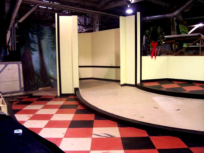 All in the Timing by Willamette Repertory Theater the checkered floor is a real workout to paint.