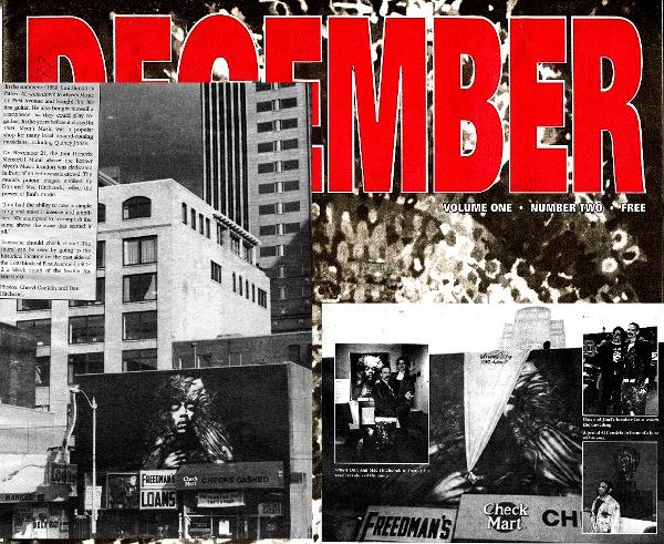 Month Magazine December 1993 In the summer of 1959, Jimi Hendrixs father, Al, went down to Myers Music on First Avenue and bought Jimi his guitar. He also bought himself a saxophone, so they could play together. In the years before it closed in 1984, Meyers Music was a popular shop for many local up-and-coming musicians, including Quincy Jones. On November 21, the Jimi Hendrix Memorial Mural above the former Myers Music location was dedicated in front of an enthusiastic crowd. The murals potent images, stroked by Dan and Mae Hitchcock, reflect the power of Jimis music. Jimi had the ability to take a simple song and make it intense and amplified. We attempted to accomplish the same above the store that started it all. Everyone should check it out! The mural can be seen by going to the historical location on the east side of the 1200 block of First Avenue (just a block south of the Seattle Art Museum).