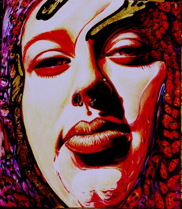 Jamie 2 oil on canvas 24 inches by 36 inches with gold leaf available $1250 |